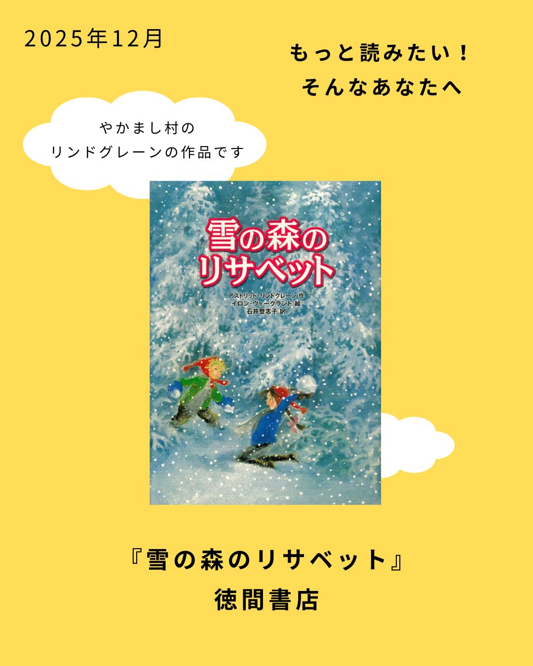 『雪の森のリサベット』作、アストリッド・リンドグレーン/絵、イロン・ヴィークランド/訳、石井登志子/徳間書店/2003年発行/56ページ/1870円(税込)
